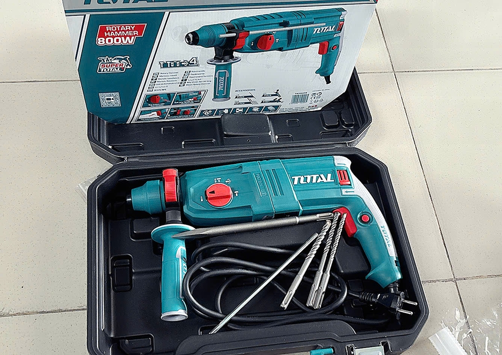 - Kèm theo 3 mũi khoan bê tông, 2 mũi đục.