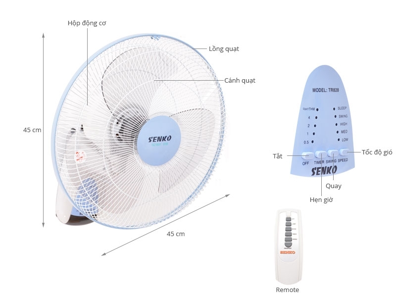 - Tiện ích : Điều khiển từ xa, Hẹn giờ tắt